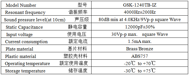 Product Name: Piezoceramic Buzzer 12mm 4.0KHz Pin-inserted