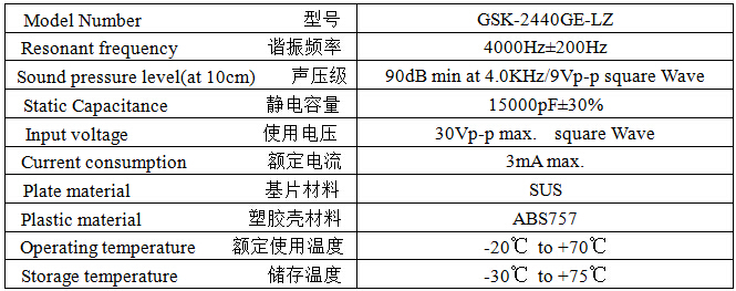 Product Name: Passive Piezoceramic Buzzer 24mm 4.0KHz Wire-lead