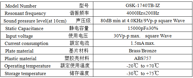 產(chǎn)品名稱: 壓電式無源蜂鳴器 17mm 4.0KHz插針