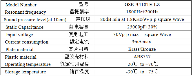 產(chǎn)品名稱: 壓電式無(wú)源蜂鳴器 34mm 1.8KHz引線