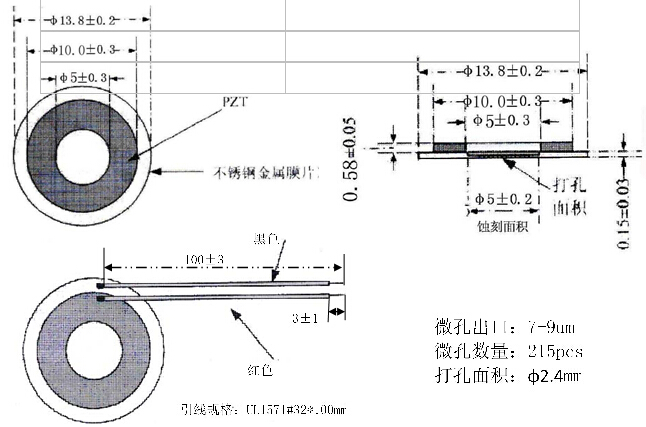 產(chǎn)品名稱: 超聲霧化片 帶鋼片 引線 180KHz 13.8mm